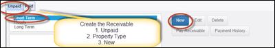 Go to Accounting> Accounts Receivable> UnPaid tab> create the receivable> highlight the property type> click New>