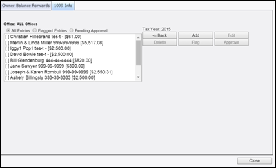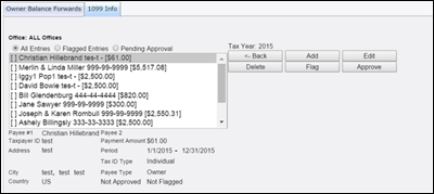 Highlighting a 1099 entry will activate the Edit, Delete, Flag, and Approved buttons.