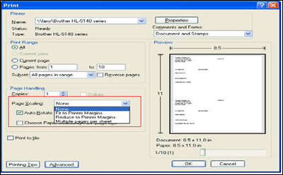 The 'None' page scaling option needs to be selected. Select the 'OK' button, this action will print the 1099s.