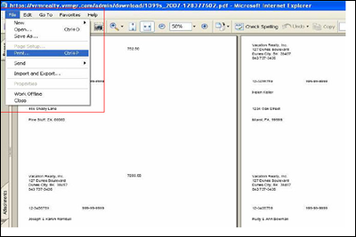 9. Printing the 1099s. Once the 1099s have been generated, it is now time to print the 1099s. Place the 1099 forms accurately into the printer. From the 1099 main menu toolbar select the File option, this action will cause the file drop down menu to appear. Select the Print option from the drop down menu.
