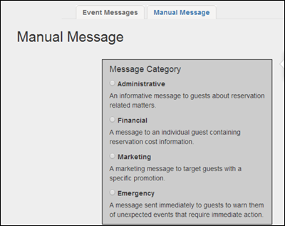 Administrative messages are ones that are pertaining to the reservation in general. They can include reminders of items to pack, or a thank you for staying with your company, etc.