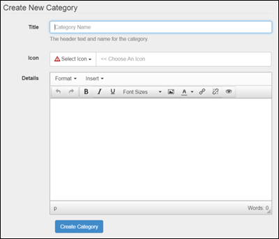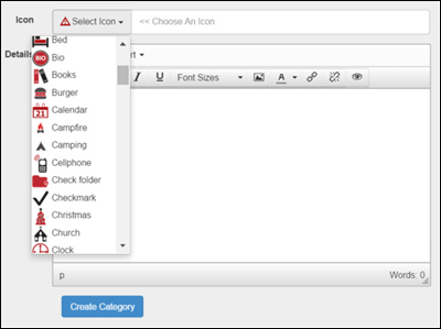 select an icon from the drop down menu to represent your category. The icon will display to the left of the