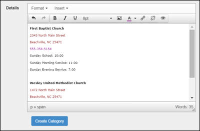 last thing that needs to be entered is the details of the category. If your category has to do with places, this