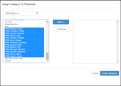 Categories Screen - 'Assign To Property' Button Clicked to Open ‘Apply Category