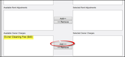 a. Go to the Other Charges tab> Highlight the appropriate Owner Cleaning charge> Click Add