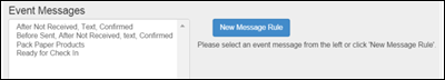 ‘Event Messages’ are messages that you create and send on a continuing basis. These are set up to be automatically sent at a specific time relating to the check-in date, check-out date, payment, or cancellation of a reservation. For example, you can create a message to automatically be sent to every guest two days before their check-in date to remind them to pack paper products, or one week after check-out thanking them for their stay, or one day after a guest cancels his reservation with refund policies. Each message you create has to have a category assigned to it, and a message type. The three different types of messages that can be set up under ‘Event Messages’ are ‘Administrative’, ‘Financial’, and ‘Marketing’. It is very important to pay attention to which category you assign to your messages, because those categories correspond with who the guest has designated to receive each type of message. (This is managed in the Guest Extranet.)