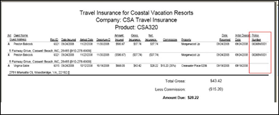 Reservation entries will appear within the ‘Travel Insurance (By Dates)’ report output based on the travel insurance distribution date.
